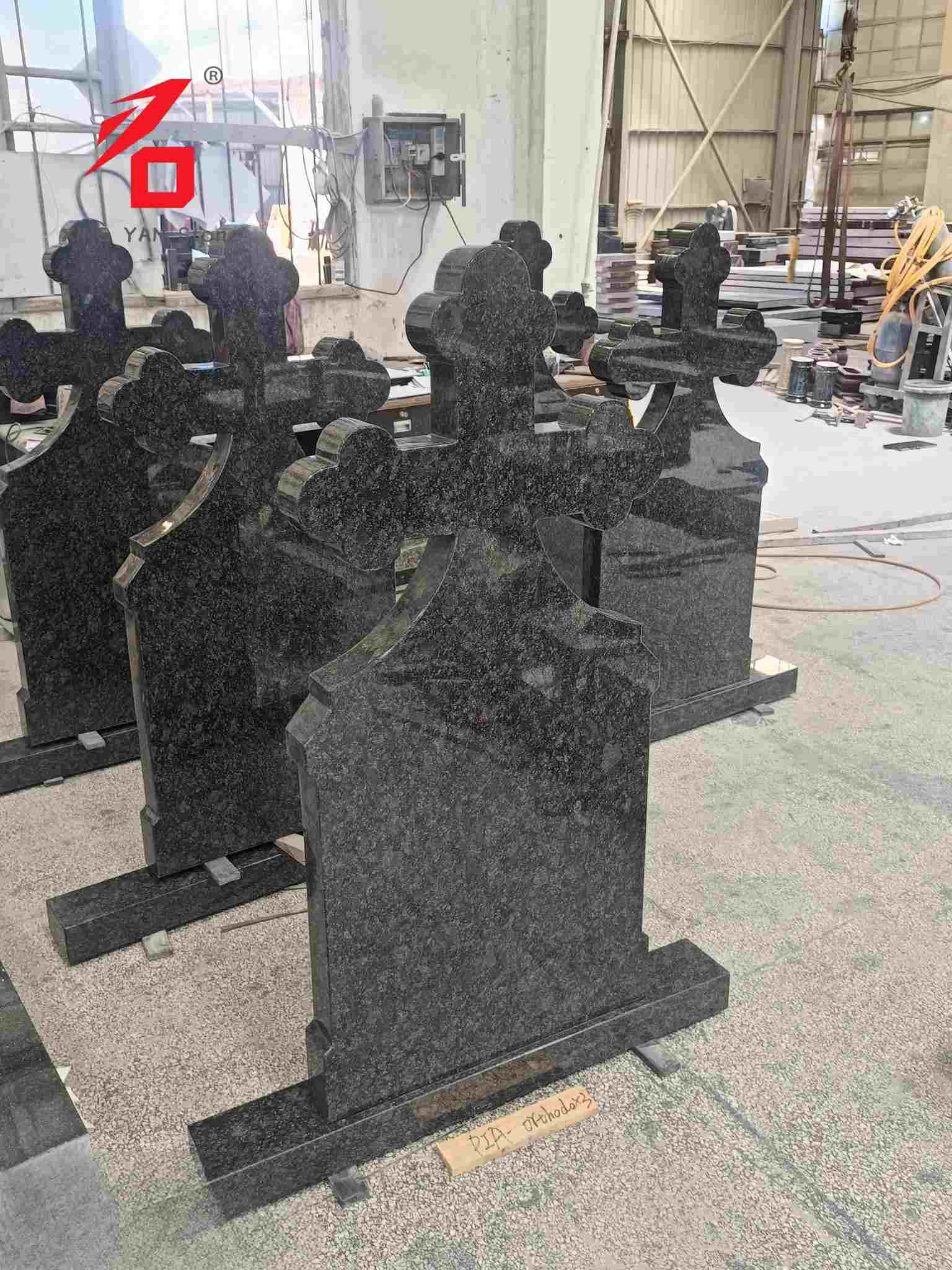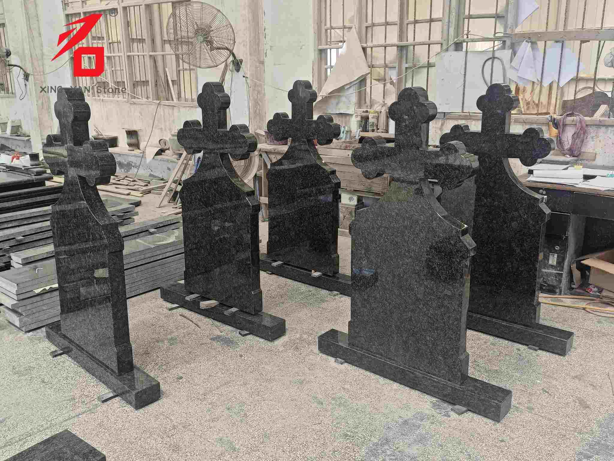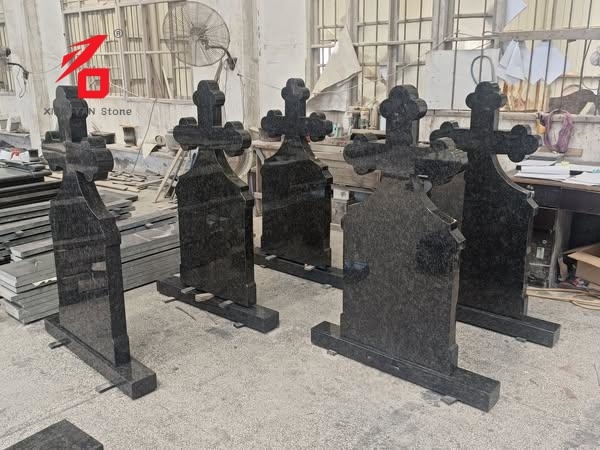 Material: Es wird hochdichter schwarzer Granit ausgewählt, der sich durch dichte und harte Steineigenschaften auszeichnet, witterungsbeständig und erosionsbeständig ist. Die Oberfläche wird einer Feinpolierbehandlung unterzogen und bietet hohen Glanz und eine gleichmäßige Textur. Es ist für die langfristige Platzierung im Freien konzipiert, widersteht dem Ausbleichen und der Verformung und gewährleistet so die Haltbarkeit und optische Integrität des Grabsteins.