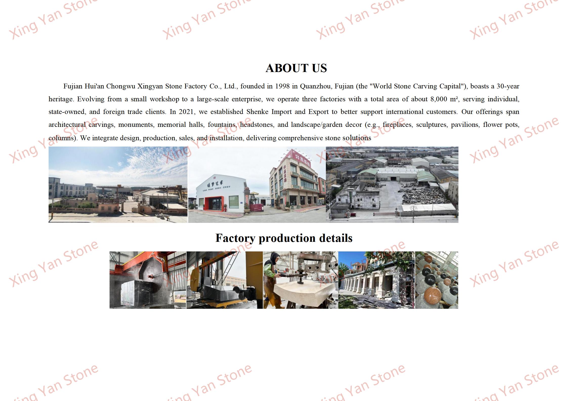 Material: Grauer Granit (harte Textur, witterungsbeständig, für die langfristige Aufstellung im Freien geeignet)
