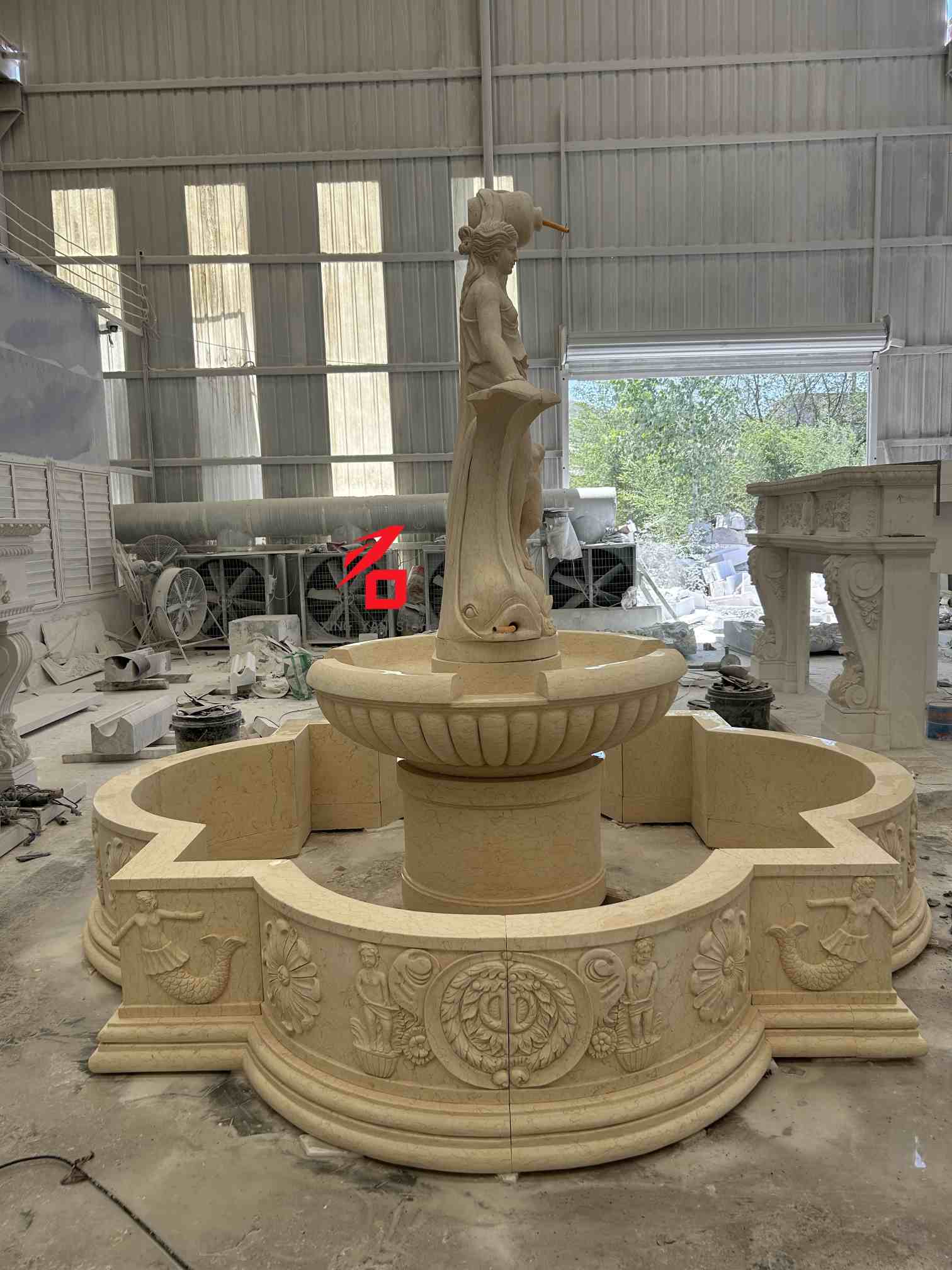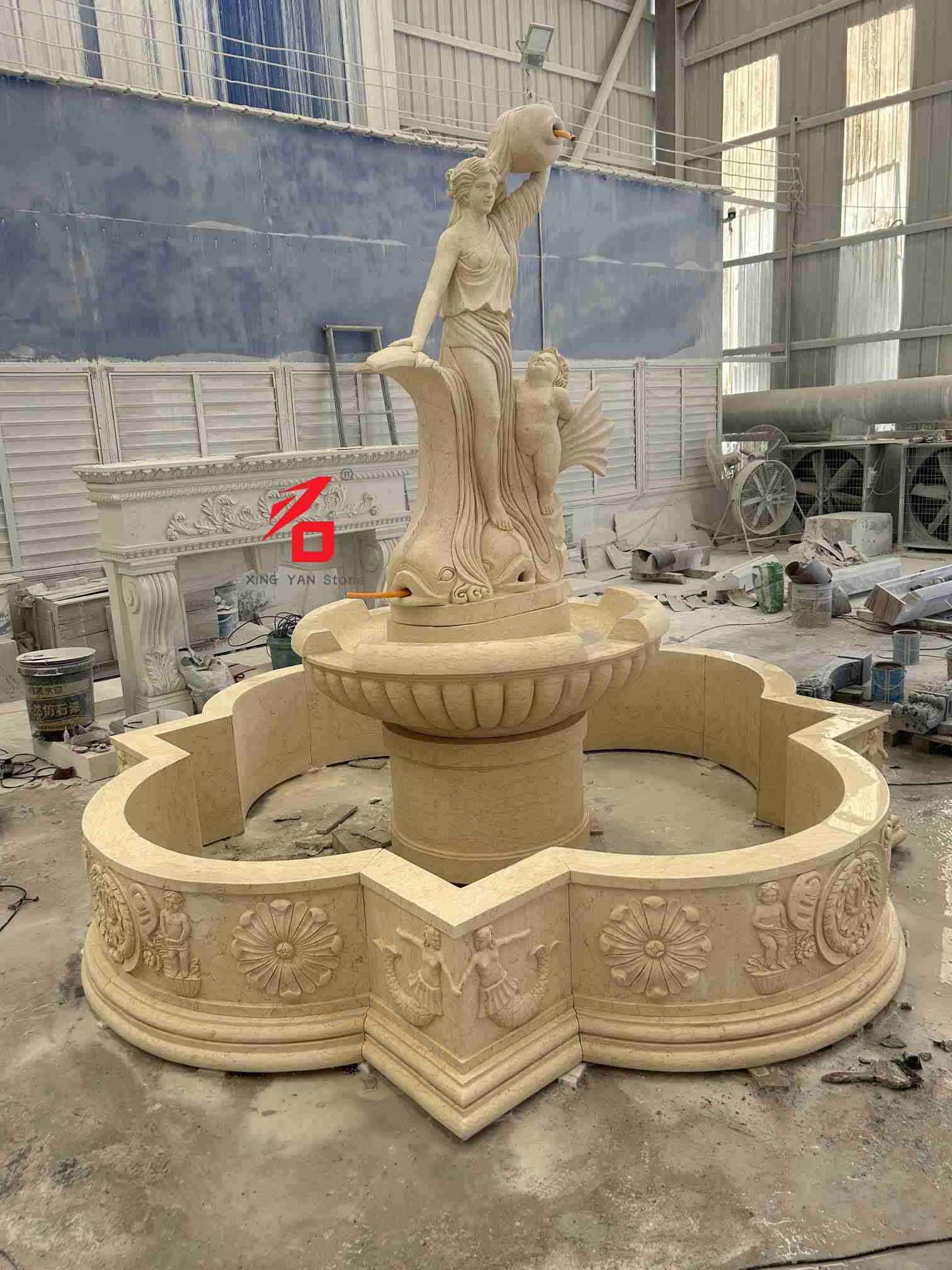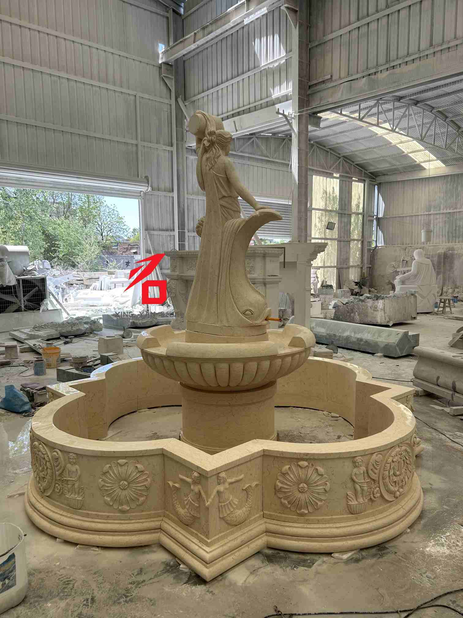 Steinoptionen: Zu den kundenspezifischen Steinoptionen gehören beiger Marmor, weißer Marmor, Sandstein und andere Natursteine. Die feine Textur, die warme Farbe und die starke Witterungsbeständigkeit des Steins gewährleisten die Haltbarkeit und Ästhetik des Brunnens für den langfristigen Einsatz im Freien. Schnitzkunst: Unter Verwendung traditioneller Handschnitztechniken fertigen erfahrene Bildhauer jedes Detail akribisch an, vom Gesichtsausdruck und der Drapierung der Göttin bis hin zu den kindlichen und fischförmigen Ornamenten, und zeigen so die künstlerische Textur und Dreidimensionalität der klassischen europäischen Skulptur.