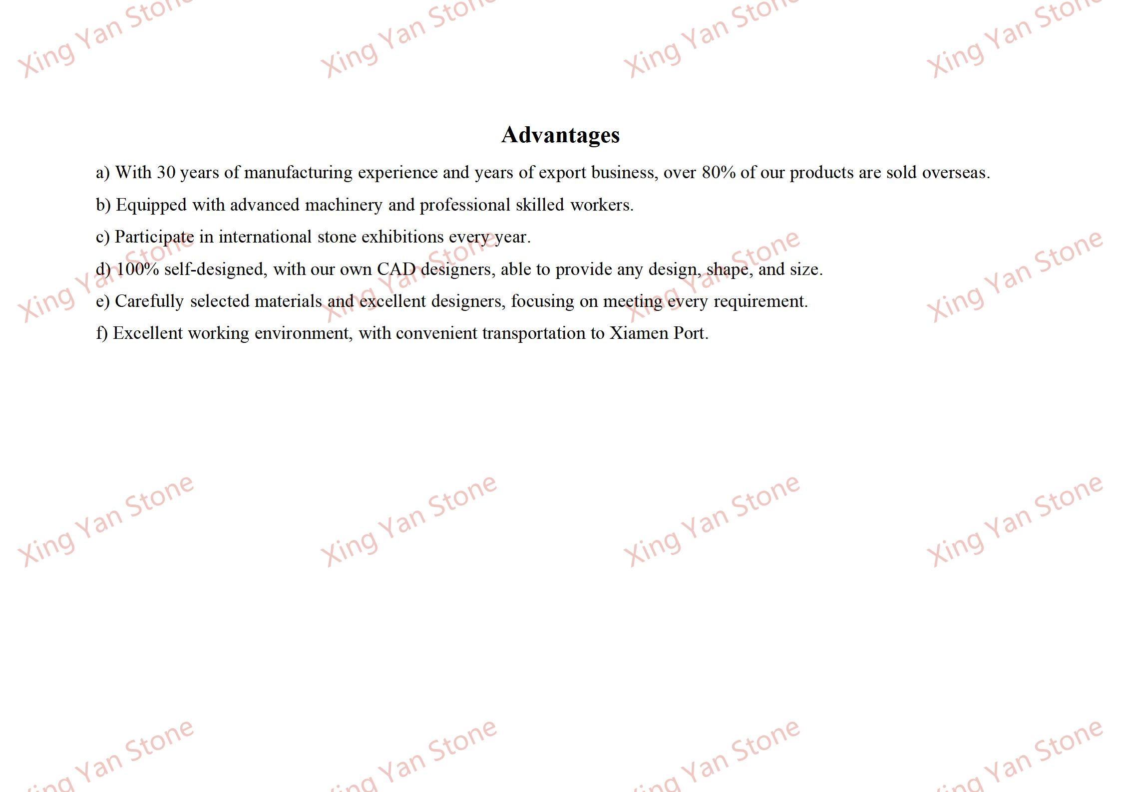 Materialeigenschaften: Hergestellt aus hochwertigem weißem Marmor (oder gleichwertigem weißem Marmor) mit einer zarten und warmen Textur, reinweißer Farbe, hoher Steindichte und Wetterbeständigkeit. Es ist beständig gegen Ausbleichen und Verformung, selbst wenn es über einen längeren Zeitraum im Freien platziert wird, und vereint Ästhetik und Haltbarkeit.